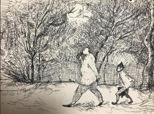 董性以在杀青后把这个剧本里没有的场景画下来,路胜舅迈着大步走在田埂上,拿一支麦克风,后面摇晃着一个小男孩。