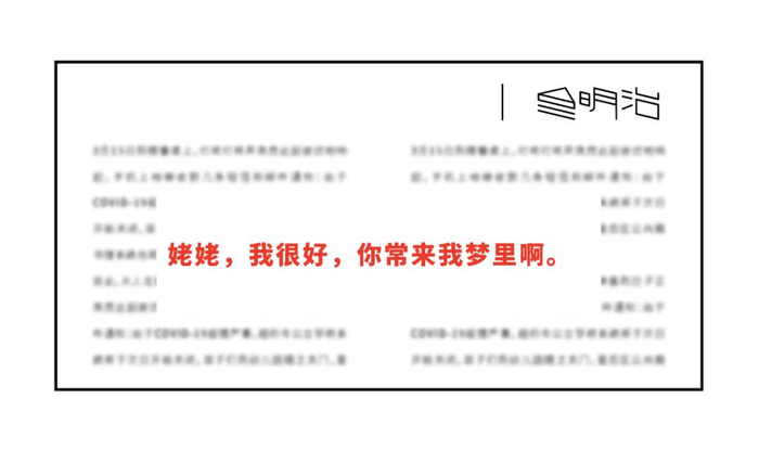 我一直没时间哭。我要照顾悲恸的妈妈。在家里,后在上了火车,我都要照顾她。是她没了妈妈,而我只是没了姥姥,我不能哭的。到了轩岗,回到那个姥姥带我长大的家里,我坐在那个曾经和姥姥一起睡觉的小床上,听见我妈在隔壁放声痛哭,我还是没有哭,我希望自己懂事一点。