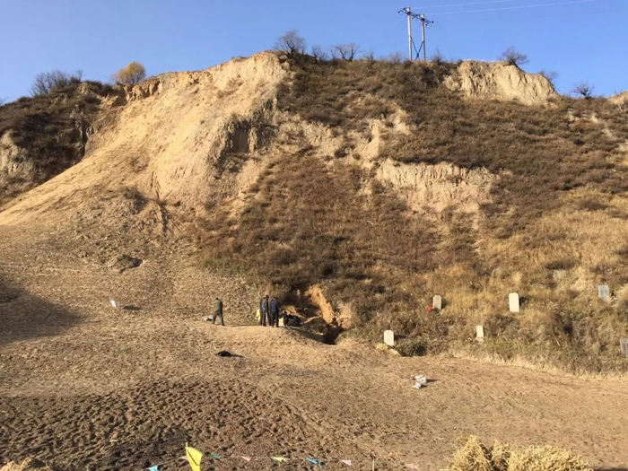 负责破土的是两位60多的大叔,这是个体力活。10月底,天还没亮的山里冷得让人发抖,但两位大叔穿着薄秋衣一直在冒汗。大姨二姨没去车里取暖,站在旁边时不时和大叔们说点好话,大概是希望他们每铲子下去都能谨慎些,别碰伤里面的老父老母。
