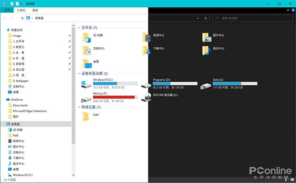 尽管UWP已经覆盖到Win10的大部分角落,但资源管理器依旧还是老版本。除了不方便触摸以外,另一个问题就是对夜间模式支持较差。