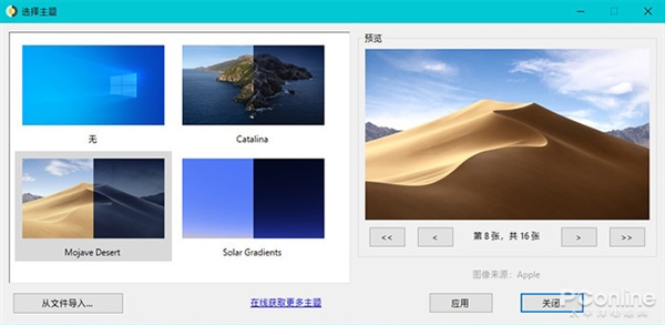 软件自带壁纸包,此外你也可以到它的网站下载自己喜欢的壁纸,点击即可使用。