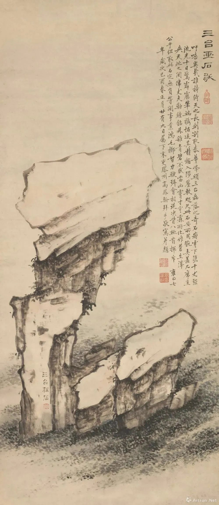 花开花落的事实并不是金农关注的重心,而永不凋谢,像金石一样永恒存在的对象,才是他追求的。时空永恒,而人生不过转瞬,人面对莽莽远古,不过如一片随意飘凌的叶子之于浩浩山林。迁灭之中,有不迁之理;无常之中,自有恒常之道。