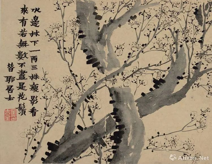 墨梅,是金农笔下的常客。他画野梅,是在画回避春天的主题。春天,这个意味着温暖、创造、新生的季节,到底有什么地方“惹”到了金农?