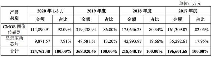 招股书数据显示,2018 年格科微实现了扭亏为盈。2017~2019 年,公司营业收入分别为 19.67 亿元、21.93 亿元和 36.9 0亿元,净利润分别为 -871.70 万元、5.00 亿元和 3.59 亿元。2018 年是一个高峰,2019 年略有下滑。