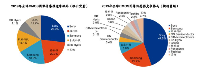 由于格科威主要出货的是较为低端的产品,导致利润率不是很高,2019 年格科微 20.7% 的市场份额能排在第二,但是 31.9 亿元的销售额只排在第八,离第一梯队的索尼、三星和豪威还有差距。