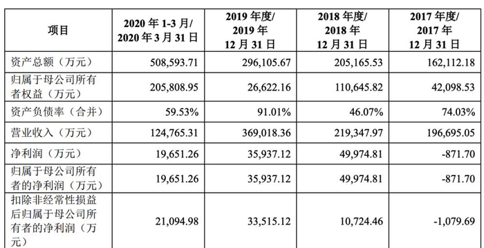 注:招股书内的报告期为 2017 年1 月~2020 年 3 月
