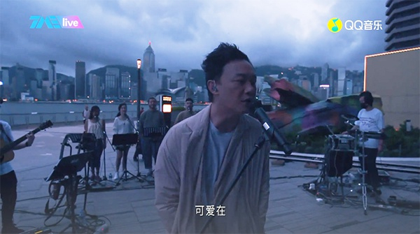 在陈奕迅的这场演唱会中,观众可以看到,从晨光熹微到逐渐明亮的天空,背后维港的天际线,甚至来回的路人,全部都自然地捕捉在镜头里。