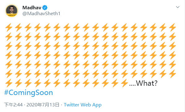 Madhav Sheth在这条推文中使用了121个闪电符号,有网友猜测realme可能是121W超级快充,也有网友猜测可能是125W超级快充。