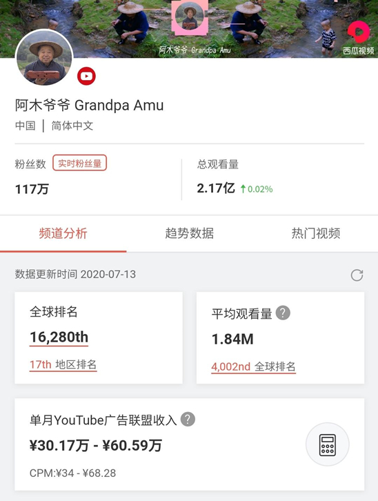 63岁的阿木爷爷成为油管网红这件事,登上了微博热搜。
