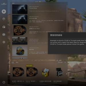 近日CS:GO游戏开发者为了将外挂程序赶尽杀绝,为最新的游戏程序新增了一项“受信任”的启动模式,该模式通过检测、屏蔽电脑中的第三方程序来阻止外挂程序的运行。