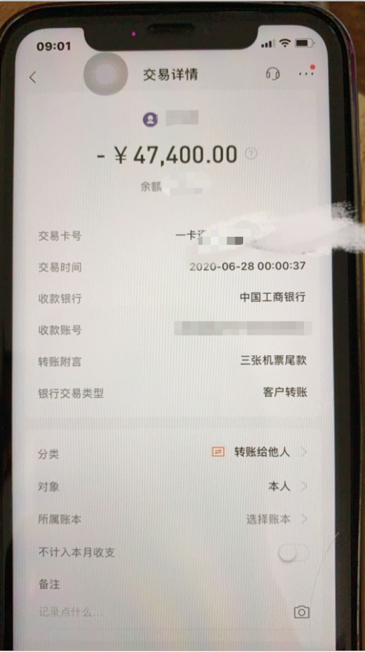 黄戎补充道,“在支付完尾款后一个小时,对方以‘没有备注’为由,需要再打一遍尾款,我以没有钱为由拒绝再付款,对方就一直催,我一直让对方先退款给我,再给他转钱。但他一直叫我再付一次尾款,这个时候才意识到,我遇到了骗子,所以我说我不要票了,请求退款,之后就不理我了...”