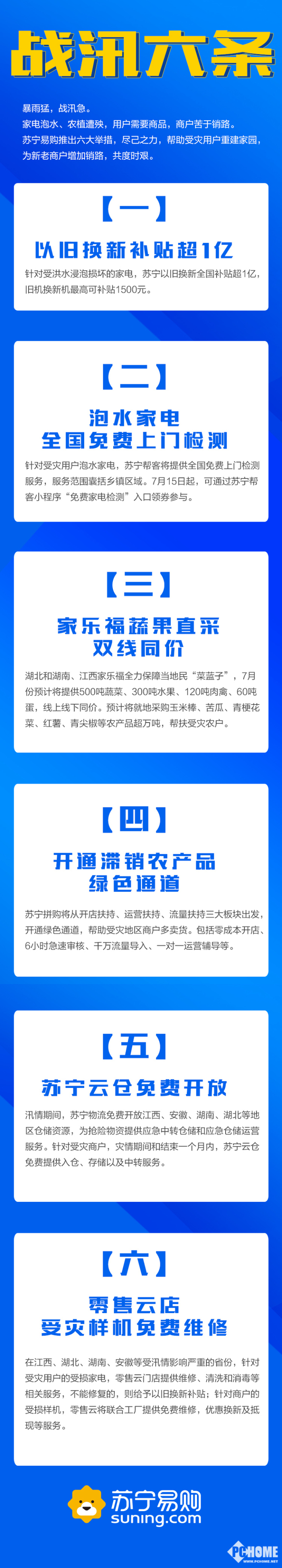 原标题:苏宁“抗汛六条”政策最大程度帮助汛后恢复