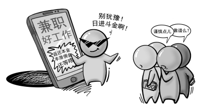 如果说捞上一笔“入职费”尚算小打小闹,更有甚者,会以“兼职”为幌子,利用人们一时疏忽,实施更大金额的诈骗。女孩小芒果告诉记者,自己读大一时看到招打字员的信息,报酬是千字十几元。“我算了下账,比发传单轻松多了,赶紧报了名。”