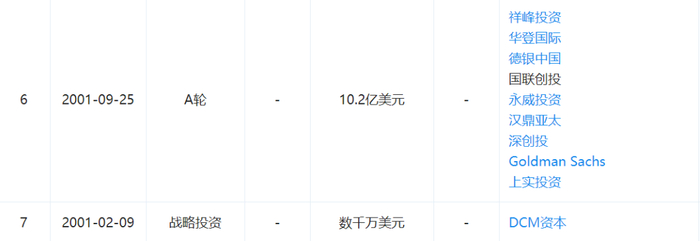 根据企查查信息,中芯国际在2001年就获得了DCM资本的数千万美元战略投资,2001年完成了A轮融资,由德意志银行、高盛、新加坡淡马锡、深创投等知名机构投资。