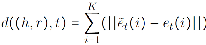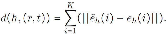 其中 f(r’,t’)为公式(4)的计算结果。然后,计算 h 的尾 -- 关系对上下文和相应的基于正交变换的三元组表示的距离,如下所示: