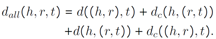 进一步,将上面讨论的四个距离分数(式 3、式 5、式 7 和式 9)结合起来作为图上下文正交变换嵌入(Graph Context-OTE,GC-OTE)的最终距离分数,用于训练和推理。