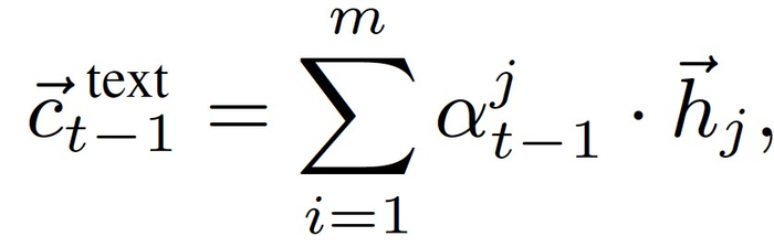 基于文本的表示 c_(t-1)^text→ 以标准的注意机制读取用户的话语编码: