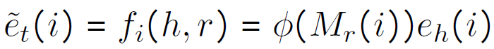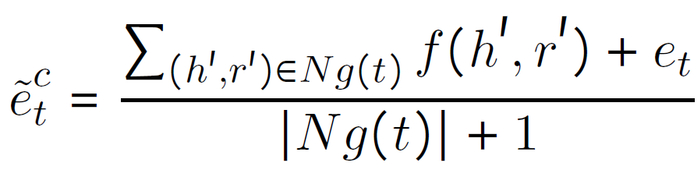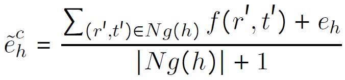 给定一个尾 t,三元组中以 t 为尾的全部头 -- 关系对 (h’, r’) 看作是 t 的图上下文,定义为 N_g(t)。首先,计算头 -- 关系对上下文表示如下: