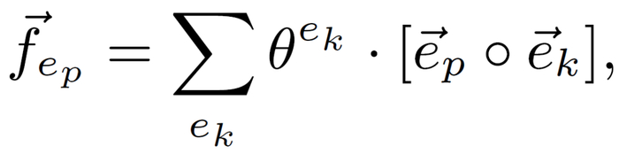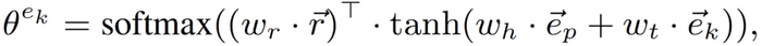 注意力 θ^(e_k) 聚合概念三元组 (e_p,r,e_k) 以得到 f_ep→: