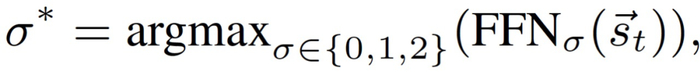 第 t 次输出表示 s_t→包含了来自话语文本、具有不同跳步的概念及其注意机制的信息。解码器利用 s_t→生成第 t 个符号,以形成包含更多信息量的回答。它通过选择单词( σ*=0)、中心概念(V^0,1,σ* =1)和外部概念集(V^2,σ*=2)使用门 σ* 来控制生成: