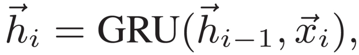 给定一个具有 m 个单词的用户话语 X={x_1;...;x_m},典型的会话生成模型通常使用编解码器架构来生成回答 Y={y_1;...;y_n}。编码器将用户话语 X 表示为表示集 H={h1;...;h_m}。使用门控循环单元(GRU)完成: