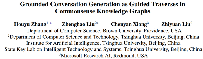 本文是清华大学刘知远老师组与来自于布朗大学、微软的研究人员共同完成的。本文主要关注知识图谱在会话生成任务中的应用,具体提出了一种新的会话生成模型:ConceptFlow,它利用常识知识图谱对会话流进行显式建模。通过将会话连接到概念空间,ConceptFlow 将潜在的会话流表示为沿常识关系在概念空间中的遍历。在概念图中,以图注意力为导向,在概念空间中向更有意义的方向移动,以产生更具语义性和包含更多信息量的会话回答。