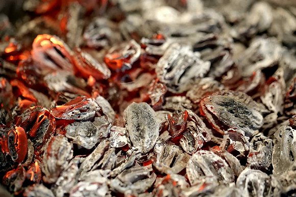炭料用的是长白山野生核桃炭,据说烤制时不仅火力更匀、烟尘更小,而且燃烧后的核桃清香会使烤肉多了一些复合味道。