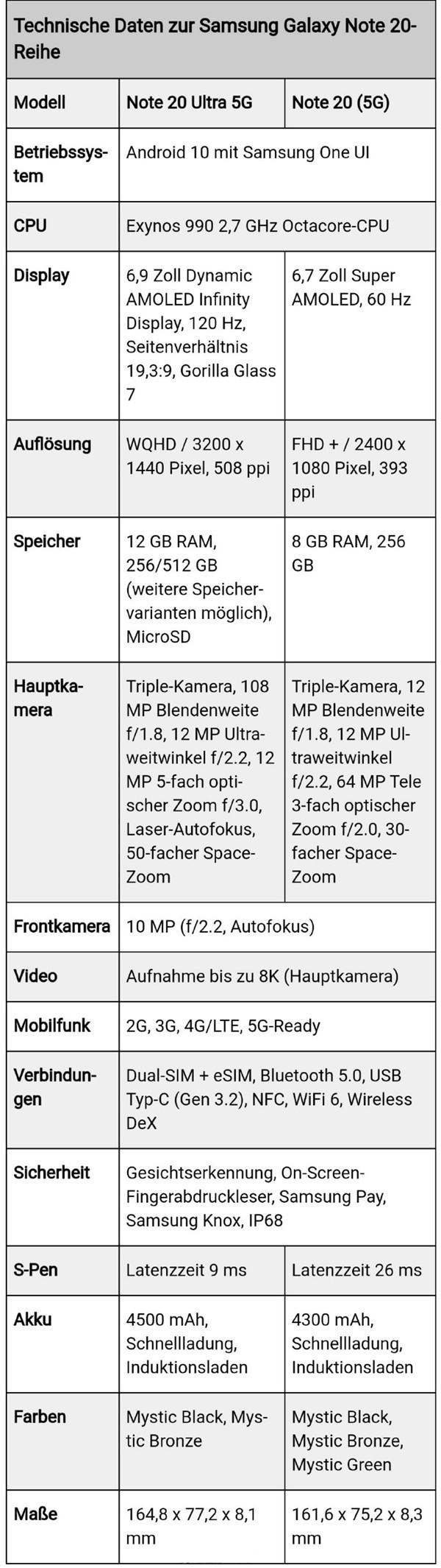 三星Galaxy系列新品发布会将于8月5日举行,届时三星应该会给我们带来Note20系列等产品。虽然现在距离Note20系列发布还有几天时间,不过网上关于该系列手机的爆料可不在少数。现在,就有媒体曝光了三星Note20系列的详细配置参数。根据曝光的参数我们可以知道这两款手机在配置上有这些差别。