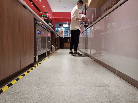 前后吧台中间预留了1.2米的空间,让店员制作动线互相不影响,不用侧身即可交叉通过。