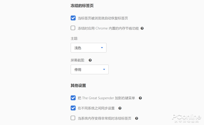 这是一款老牌的Chrome扩展,它的作用在于可以冻结后台的标签页。在Chrome商店中,可以直接安装The Great Suspender,而国内用户也可以直接通过搜索引擎找相应的crx文件安装。