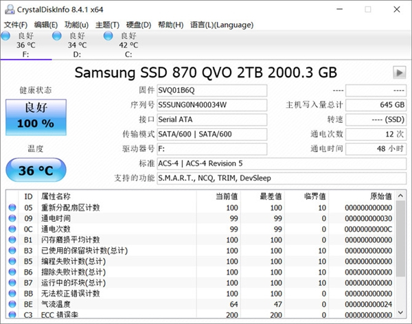 通过以上几款专业工具的测试,可以看到这款三星870 QVO固态硬盘不仅在读写速度方面非常强悍,运行还非常稳定。