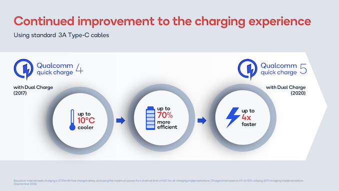 新技术不仅仅是提供更多的电力,Quick Charge 5也比它的前代产品更高效,尤其是具有全方位的热管理让它工作时的温度比前代产品低10摄氏度。
