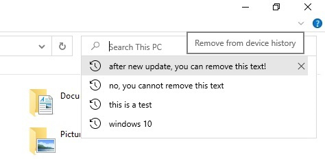 当你键入时,这些搜索结果会显示在下拉菜单中,你的搜索结果会被保存下来。不过,微软破坏了一些用户的搜索栏,还禁用了右键功能,防止用户快速删除搜索记录。