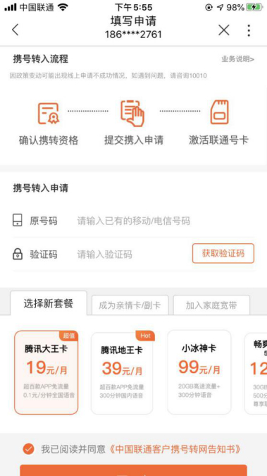 其实,经过运营商的持续投入开发,目前“携号转网”在很多地方都已实现线上办理,用户不必一趟趟亲自跑营业厅了。以中国联通为例,在手厅-服务-携号入网开通了携入入口,异网用户登陆手厅后可以在首页直接看到,用户只要符合原运营商转出条件并获得授权码,就可以在此转入联通并选择套餐,下单完成后会有专人上门办理,十分方便快捷。