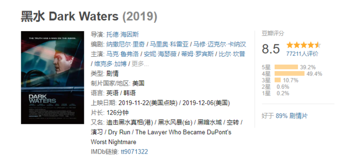 律师推掉所有案件,以一己之力,花费一年时间将材料全部看完,并联合一些专家学者发现一种叫PFOA的化学物质破坏了人体健康。还有很多细节这里就不多讲,可以证实的是杜邦公司一开始就知道PFOA的危害性但毫无作为。