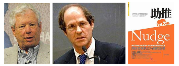 图1:左图:理查德·H·泰勒(Richard H. Thaler)(左图)、中图:凯斯·R·桑斯坦(Cass Robert Sunstein)、右图:《助推:我们如何做出最佳选择》,中信出版社,2009 | 图片来源:wikipedia.org、douban.com