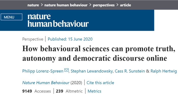 今年6月,一组来自柏林马克斯·普朗克人类发展研究所、布里斯托大学与哈佛大学法学院的研究者,从行为科学的角度分析了相关问题,并给出了他们的干预措施。这一研究成果发表在了 Nature Human Behaviour 上。