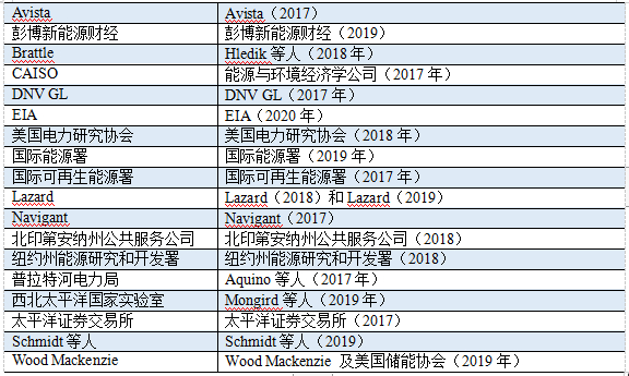 为了对当前文献进行中立调查,本报告中包含的所有成本预测均具有同等权重。仅考虑了2017年或之后公布的存储预测。然而,许多最新预测只不过是对旧预测做了汇总(就像本报告一样)。例如,Comello和Reichelstein(2019)所做的预测是基于2017年或更早的出版物得出,而Nian,Jindal,an Li(2019)则使用了Cole等人(2016)和国际可再生能源署(2017)的预测结果进行成本预测。