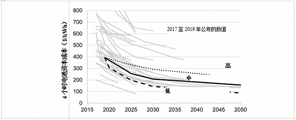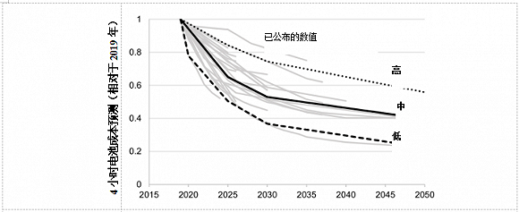 图4.来自2018年或更晚发表的研究当前电池存储成本