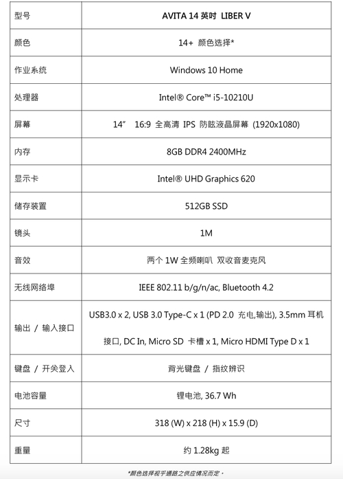 AVITA LIBER V 產品規格: