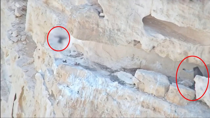 据外媒报道,以色列南内盖夫沙漠的悬崖上生活着濒危的格里芬秃鹫一家三口,不幸的是秃鹫妈妈因飞到电线上丧生,仅靠爸爸带回来肉不足以喂饱小秃鹫。于是以色列专家决定用无人机投喂食物,帮小秃鹫快快长大。