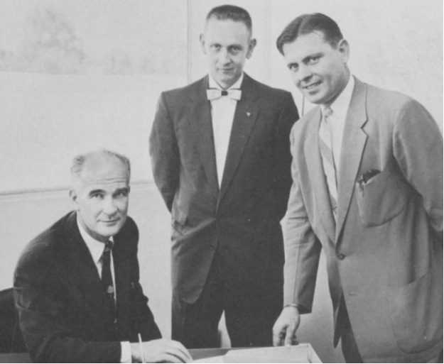 (威廉·肖克利和Dean Knapic<右一>在Shockley半导体实验室工作)