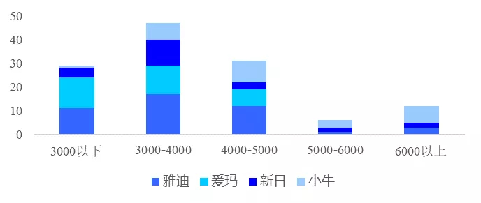 除小牛电动锂电动车价格较高以外,中低端车型仍是电动两轮车市场的主流,同时高端车型以锂电池电动车为主,6000元以上的高端电动车小牛电动有7款,雅迪有3款,新日有2款,而爱玛目前没有6000元以上的车型。