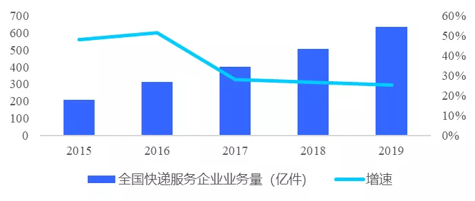 2019年,全国快递服务企业业务量累计完成635.2亿件,同增25.3%;业务收入累计完成7497.8亿元,同增24.2%。我国已成为全球快递量最大的国家。