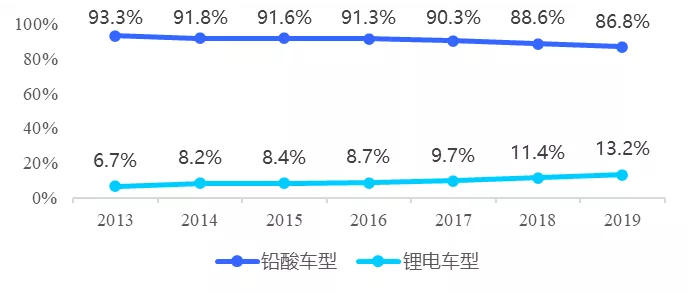 ▼ 铅酸蓄电池2019年渗透率达86.8%