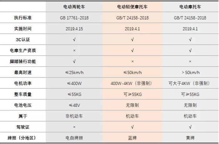 新国标下,电动两轮车有了进一步的细分和要求: