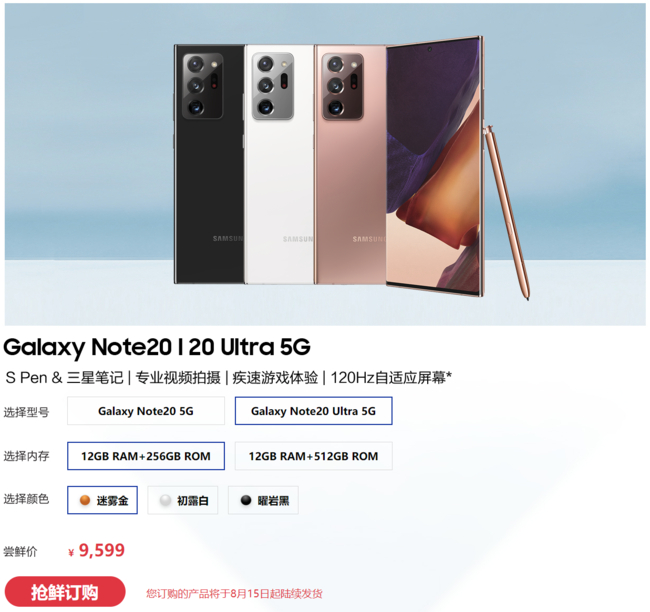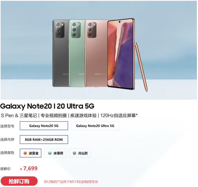 iMobile手机之家,8月6日消息 昨日晚间,三星在海外正式发布了下半年旗舰Galaxy Note20系列,新品包括Galaxy Note20和Note20 Ultra两款,而没有介于中间的“大杯”,新品目前先行者计划尝鲜价分别为7699元和9599元起。