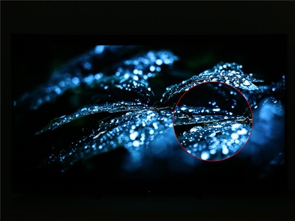 通过画质提升技术,两台电视均能将4K清晰度的画面提升至接近8K的水准,但局部放大之后我们可以看到Z8H在树叶上的水滴细节纹理上要更加清晰一些,整体的画面锐度更高。