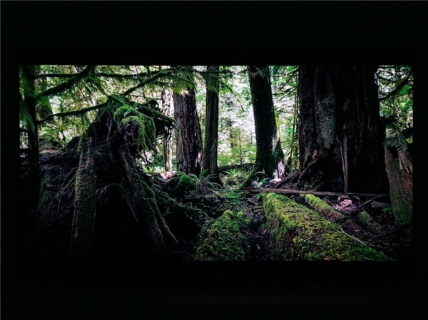 两款产品在显示同一片源的时候最大的差别感受就是色彩方面的不同。以下图的对比样张为例,索尼Z8H的色彩明显要更加浓郁,而Q950TS色彩则会寡淡一些。不过三星在树墩的的暗部细节方面表现会更好一些,但随之而来的也是中心高光区域的过曝。