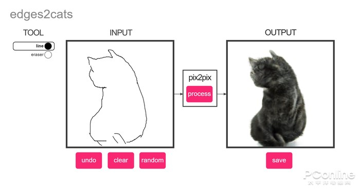 我们知道 AI 的原理是机器学习和神经网络,海量数据通过先进的统计学算法多次处理,最后 AI 程序能给出接近乃至于人脑的推演反馈。而这款名为 “Image to Image”的 AI 演示程序,通过 Tensorlfow 进行数据训练,只要给到简笔画,就可以输出真实照片,听着就颇为神奇。